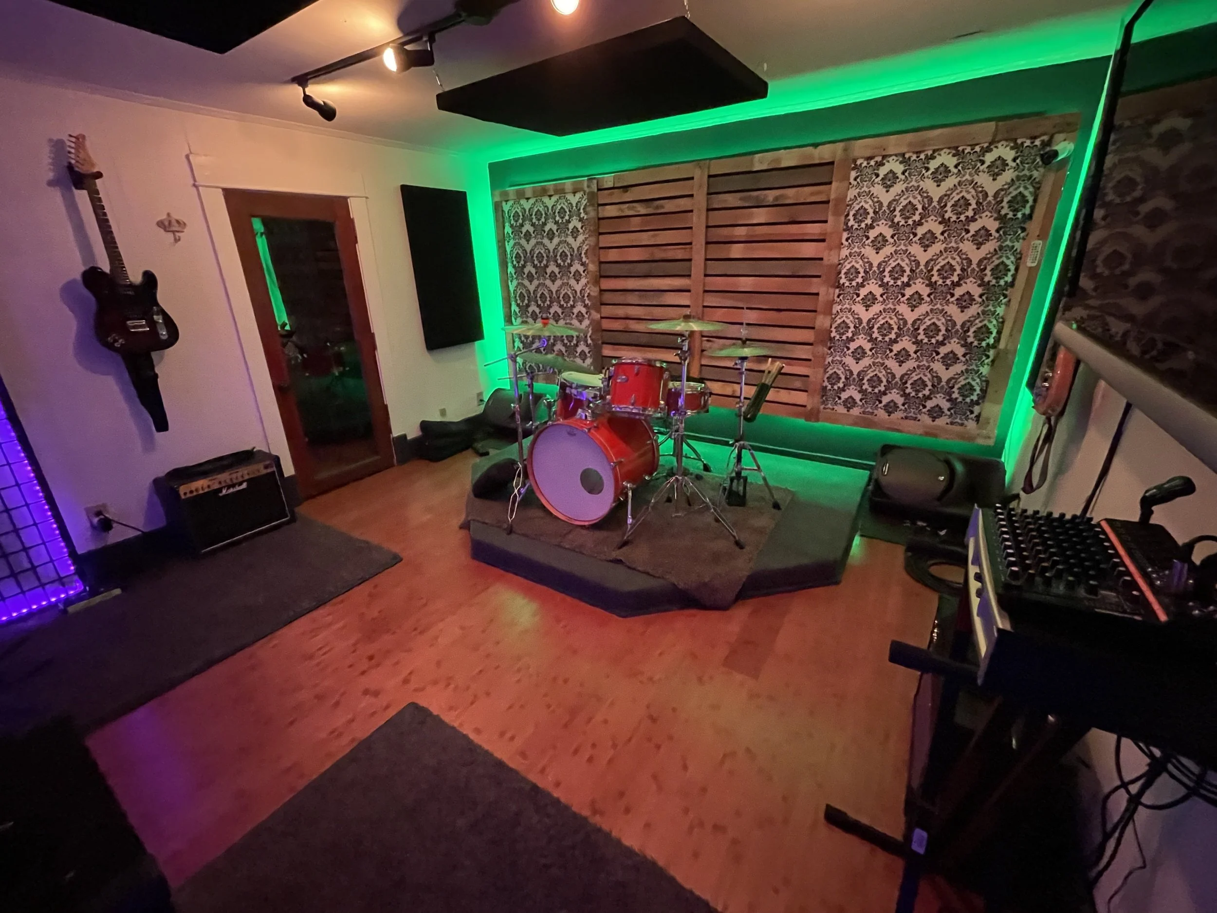 County Line Recording Studios provides a space for musicians and songwriters to rehearse together and hone their craft. This includes use of our house drum kit and a limited backline which includes 2 guitar amps, a bass amp, and a small PA for vocals.